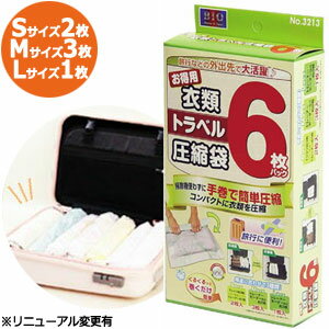 Sサイズ2枚、Mサイズ3枚、Lサイズ1枚の用途に合わせた3種類の圧縮袋が入ったお得用6枚パック。
