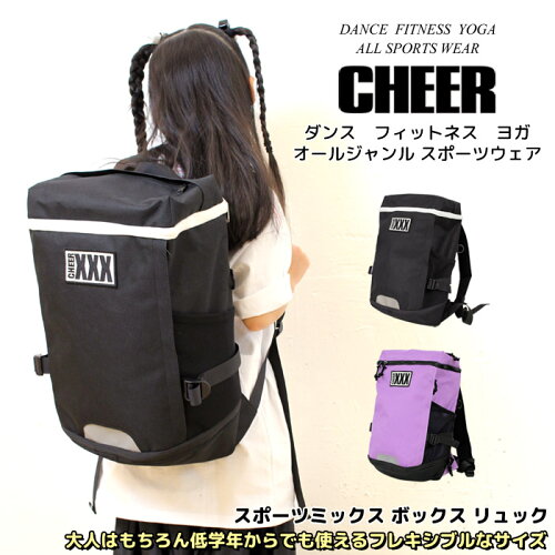 ポイント最大6倍 おしゃれ リュック 【CHEER】[チアー] スポーツミックス ボックス リュック 黒【レディース キッズ ジュニア ダンスふくや レッスン着 バックパック リュックサック スポーツ ジム 遠足 通学 大容量 子供 小学 中学 メンズ ダンス チア フィットネス】